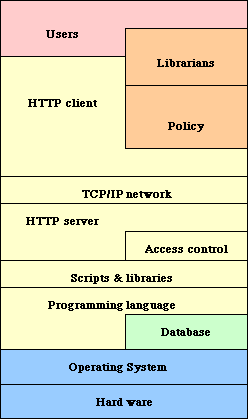 The HTTP server hosting MyLibrary@NCState is a Netscape Enterprise Server, but any HTTP server would work as long is could run on a Unix computer and support CGI scripts; MyLibrary@NCState does not rely on any special functions of the Netscape Enterprise Server.