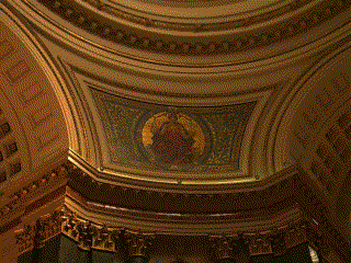 In the afternoon I was inspired by Wisconsin's capital building and its murals, promenaded up and down State Street a number of times, enjoyed reading on on the terrace of the university's student union, collected some water from the lake, and got my year's supply of cholesterol at Smokey's Club.